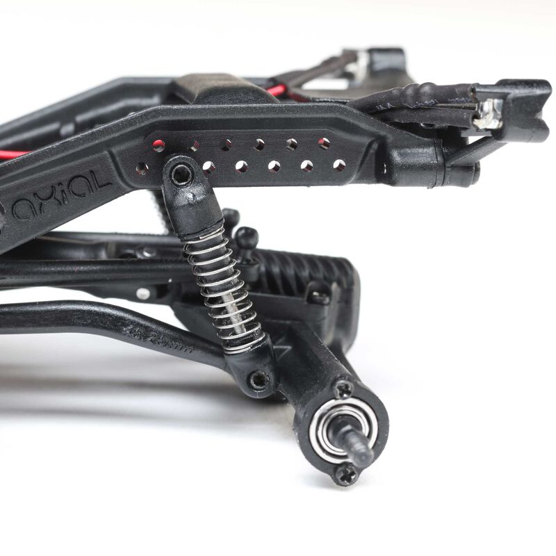 The Axial SCX30 Jeep JLU RTR has a high-performance chassis with an angled skid plate to help you slide over challenging obstacles - a feature usually found only in comp crawlers. Ramped axle housings and high clearance links also help to avoid dragging and hangups, while the forward weight bias improves climbing stability.