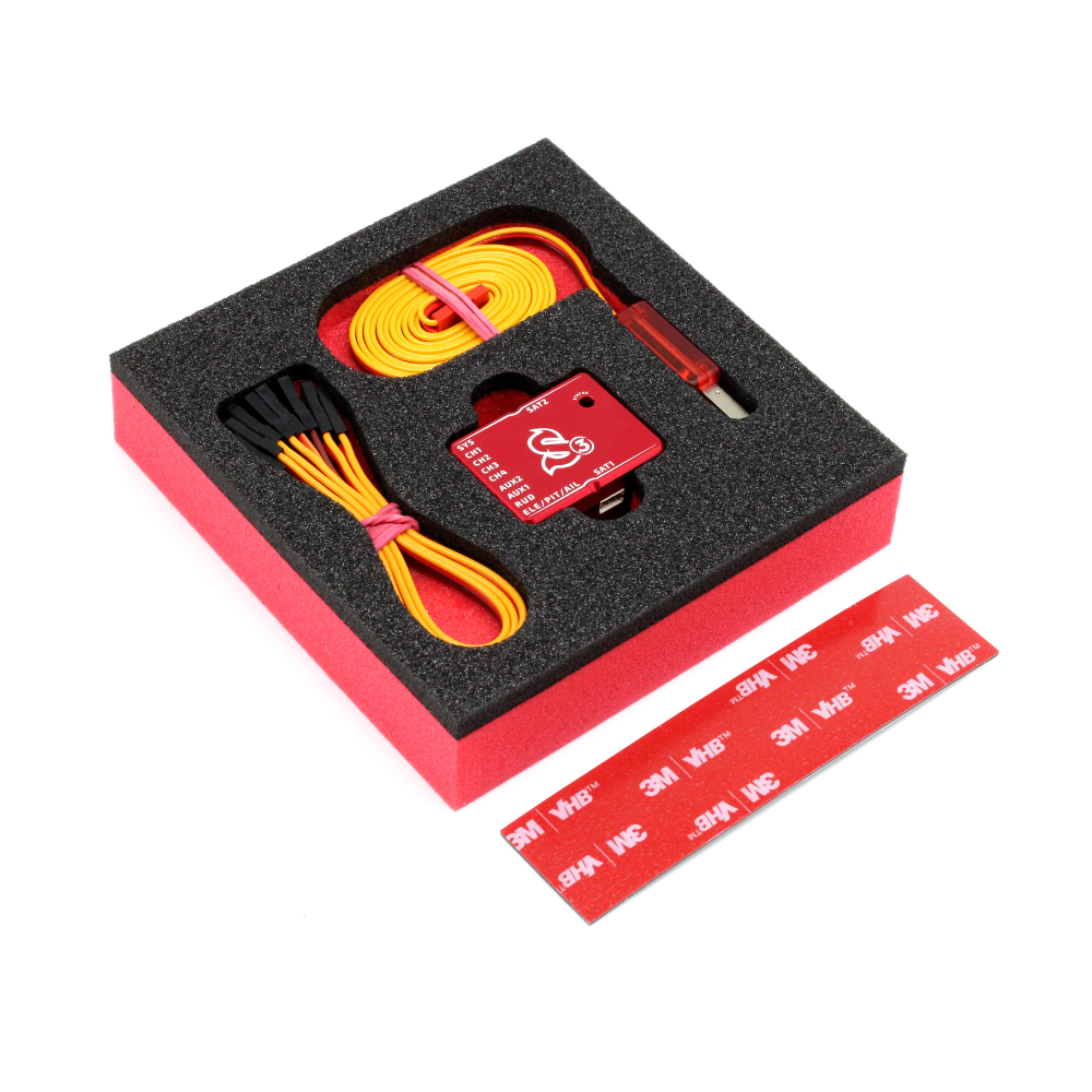Hardwarel Very rigid, CNC milled, anodized and sandblasted enclosure l Color: Red and Black, matt l Material: High quality AL6061-T6 l Dimension: 36.8x27.15x13.9mm, weight: 18g l Power supply: 2 - 15V @ 50mA l Operating temperature: -10°C to 60°C l Latest generation, Ultra Fast ARM processor: 462 DMIPS l IMU MEMS sensor with 20bit precision l Gold plated PCB with Pb-Free soldering l Laser Engraved labels for perfect visibility. l Integrated S-BUS Inverter l Integrated FrSky Integration cable l Setup directly from radio with common brands l 2x native Spektrum connectors l 3x connector for power supply, 4x for servos l Revolutionary GeoLink support (GPS, vario, logger) l Spirit Aero support (coming soon) l All-pin protection l Redundant internal powertrain for maximum safety l Excessive tolerance for brown-outs l Dedicated capacitor for peripheral voltage stability l Simplified JETI receiver wiring l Embedded Pressure sensor l Dedicated Memory Chip for Real-Time logging l Samtec Pin headers for high current transmission Package contentl Spirit 3 unit l USB interface l 15cm receiver cables l 10cm 3M VHB doublesided adhesive tape |