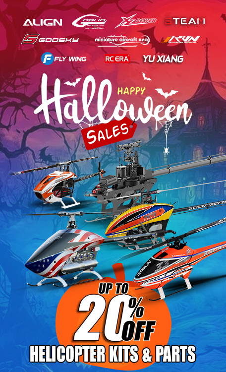 Get up to 25% OFFselected RC helicopters, parts, and gear. Plus, we've unleashed spine-tingling discounts on almost all items storewide! Whether you're upgrading to a 700-class monster or stocking up on essential parts, now is the time to make your move.