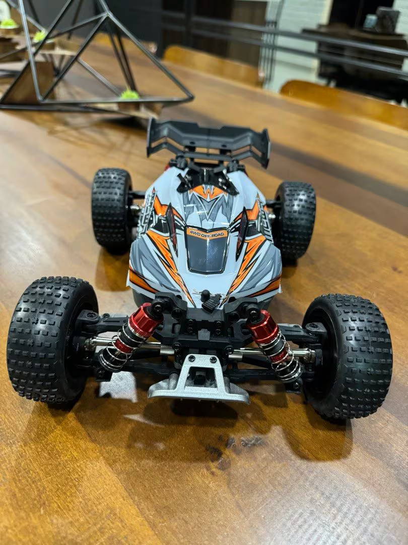 One of the standout features of this RC car is its all-metal hydraulic shock absorber and metal anti-collision head, ensuring it can withstand the toughest terrains. Its standard 2S battery allows for speeds up to 55km/h, but with a 3S battery, it can reach up to 80km/h.