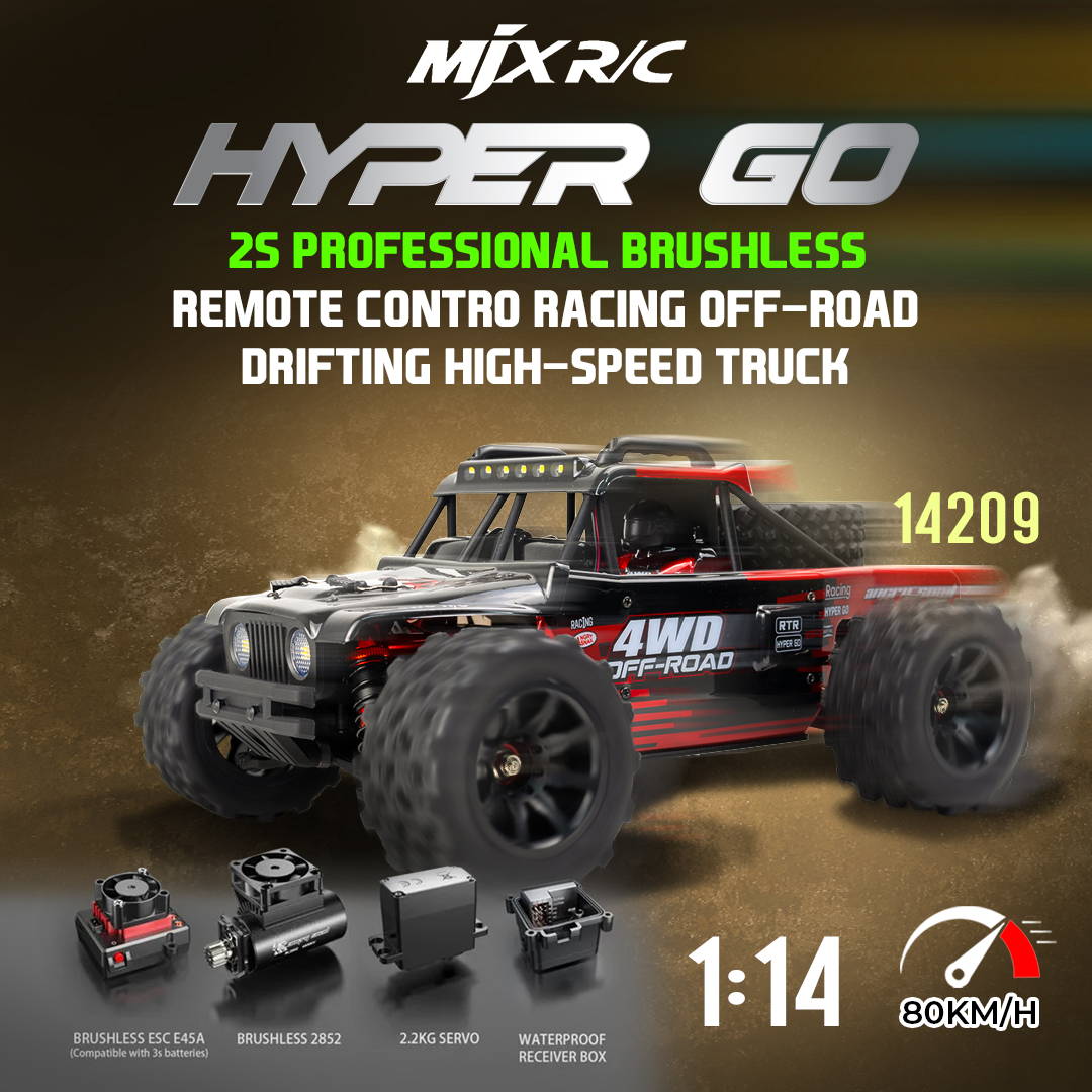 Introducing the MJX Hypergo 14209 RC Car - a professional, brushless remote control racing car designed for high-speed off-road drifting and racing.