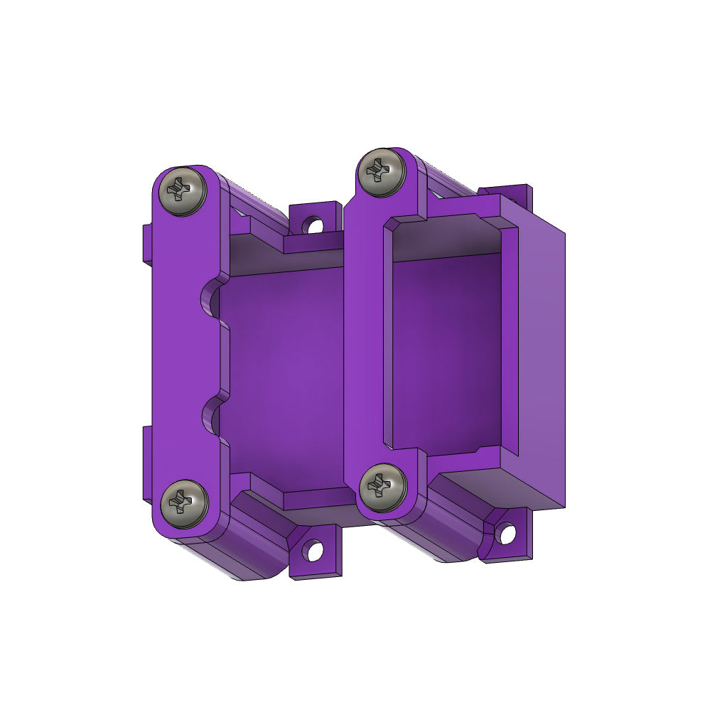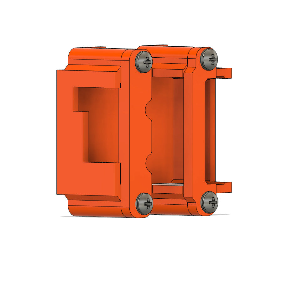 The SF10 is secured by TWO snug clamps on top of the mount. The clamps are attached with 3mm flat head screws (provided). Mount may be held into the airframe with screws (not provided) or adhesive.