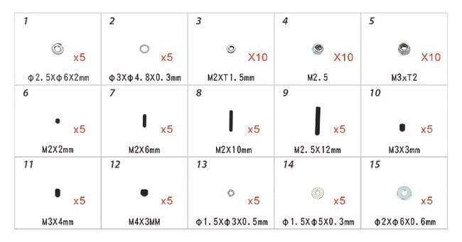 This is a GREAT deal. All the hardware for Align 250, 450, 500 for $15???? Seriously? Yes, they were serious. This "bag-o-screws" has saved several flying days and long searches and waiting for parts. Just get it when you buy any of the 3 size helis above. Like ordering extra tail-blades...dirt-cheap, and great to have when you need them!