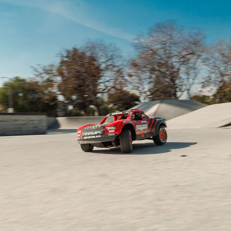 Indoors and outdoors, the MOJAVE GROM goes places that are off-limits to larger RC desert trucks. And it’s still engineered to the same high standards as other ARRMA vehicles. No compromises were made when reducing the size. With its smooth handling and tackle-anything toughness, you can be as aggressive as you like when you send the MOJAVE GROM through the corners and over the jumps.
