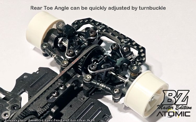 -Active Rear Toe system, easy adjustment of the rear toe angle and you can change the mid corner rear grip of the rear by adding or reduce shims.