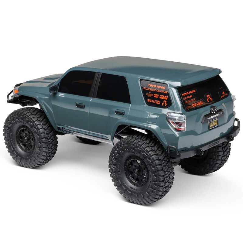 The Axial SCX24 2024 Toyota 4Runner achieves a high level of scale realism with its officially licensed, extra-durable ABS hard body. Even the most die-hard Toyota fans will appreciate its exceptional detail.
