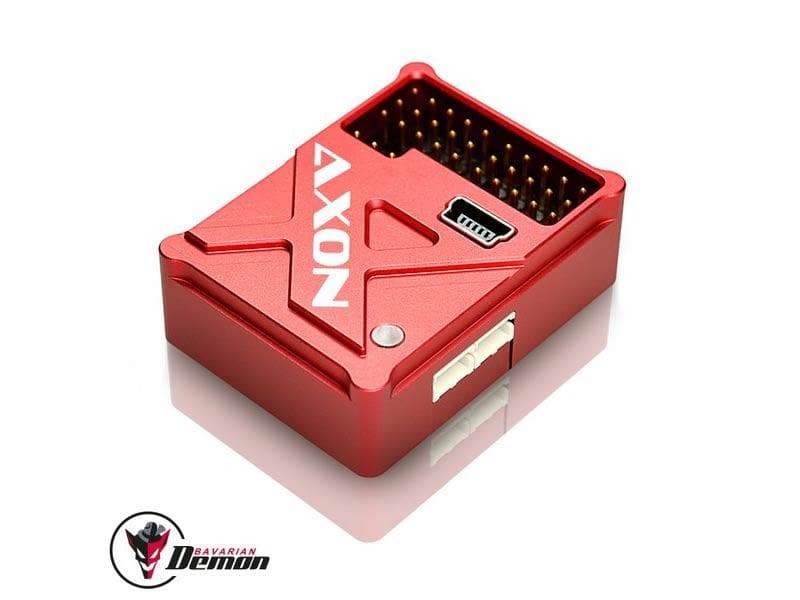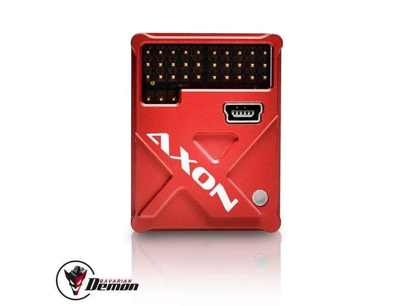 The AXON will convince with its ultra-precise flight control, latest 32-bit technology, up to 3 bank sets, intelligent vibration analysis and, for all who do not want to miss a single thing, now including a governor function for electric and gaser/nitro. Moreover the AXON is compatible with all common analog and digital serial Tx/Rx protocols. This innovative technology, available to all RC pilots out there, comes in a brand new X-housing made of fire-red aluminum. It all simply feels great, and in the twinkling of an eye you will find yourself on a new level of performance.
