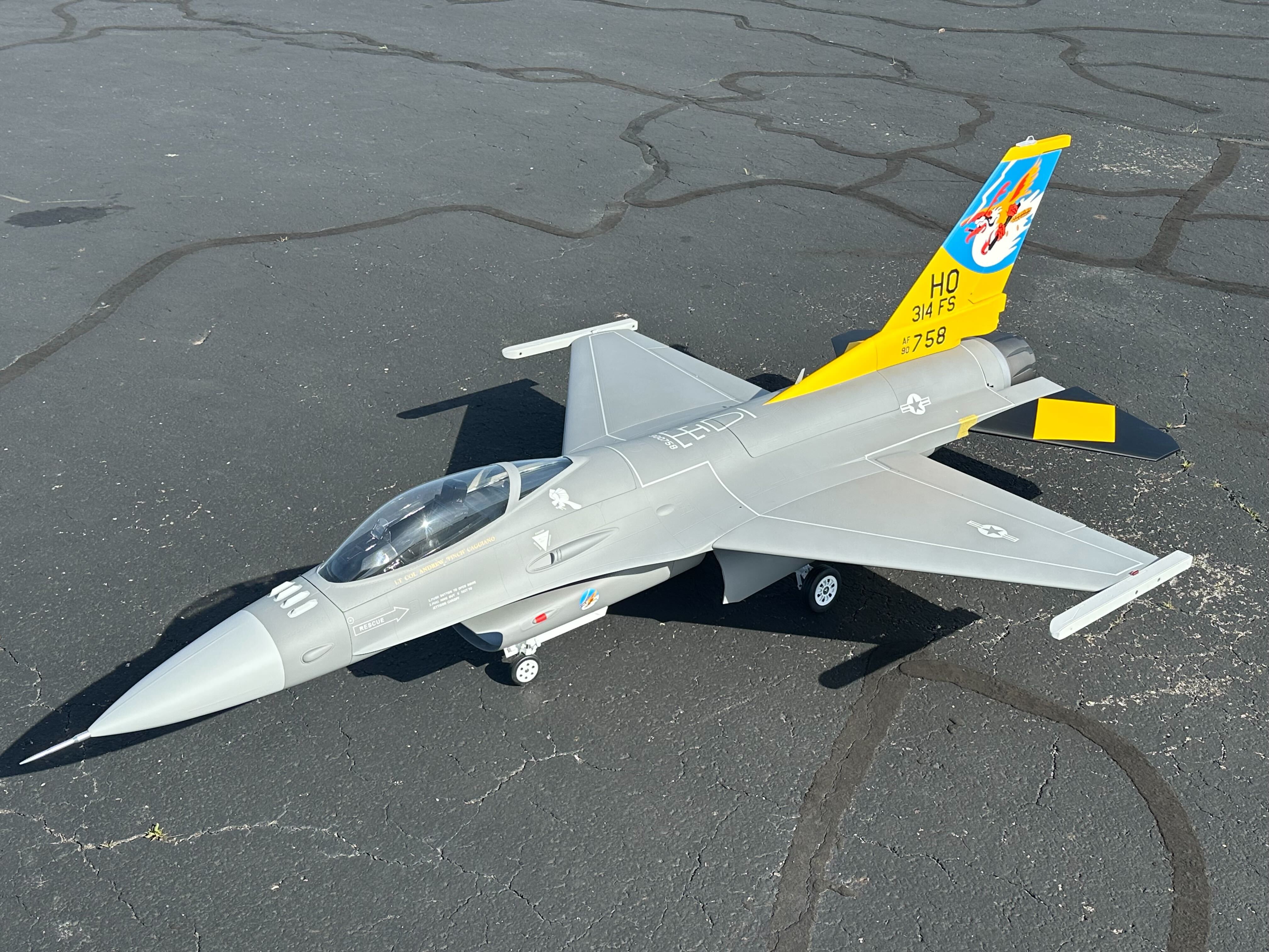 The F-16 is a very well known fighter Jet and we are bringing to the Market probably the best flying of all the model F-16’s out there. Our F-16 is light, and strong, flying on anything from an 80N turbine all the way up to a 190N turbine!