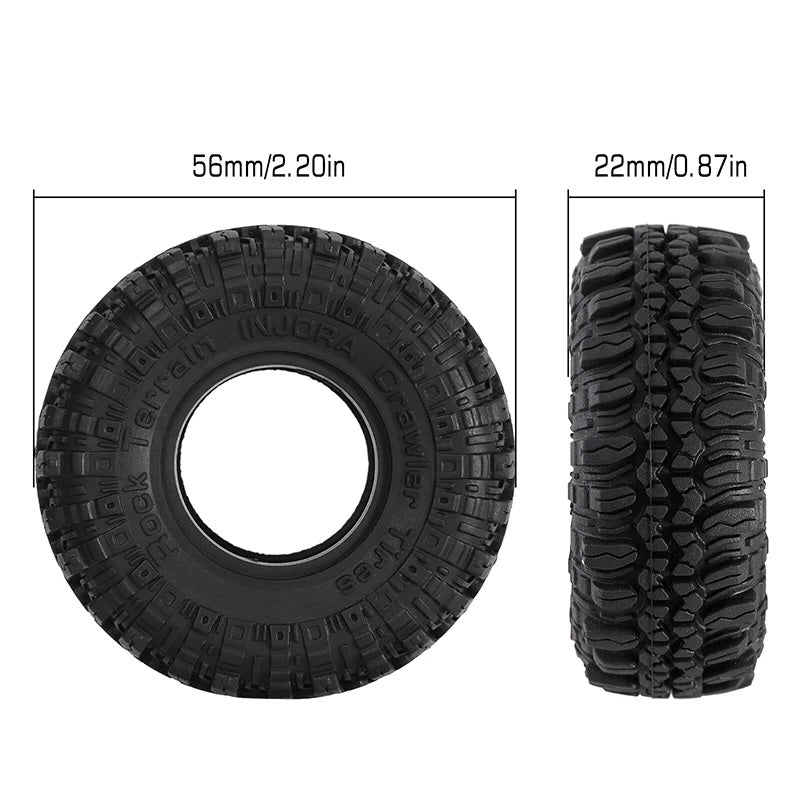 Ordered these for my Traxxas 1/18 scale Bronco .. they fit perfectly. They are almost identical in size to the stock tires, so no fitment troubles. These tires are almost 1" wide and look and feel very soft and pliable. The shipping was very quick also.