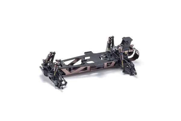 Large capacity oil shocks feature titanium coated shafts for smooth function and durability plus dial adjustable ride height. Shock caps and cases are finished in the Kyosho Works signature gunmetal color.