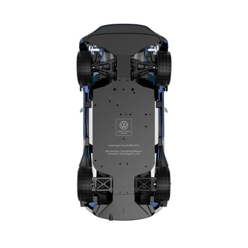 • Officially Licensed Volkswagen Polo R WRC Body: Stunning blue and white livery with authentic rally details.