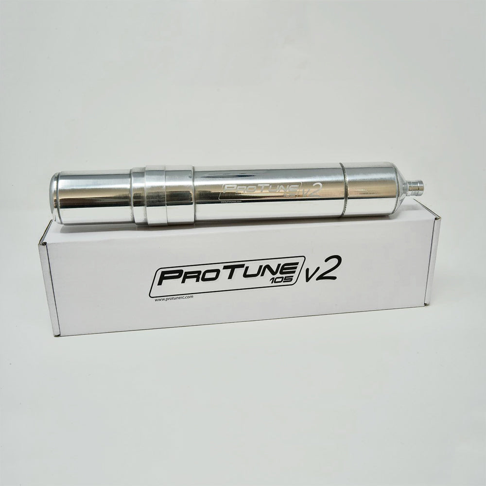 In late 2016, with 20 years of nitro tuning experience under my belt I set out to design a muffler that would meet all of my desires for a properly tuned exhaust. I saw the need for proper exhaust port matching, improvement in sound, improvement in flow and scavenging, ease of use/maintenance, as well as a fresh stunning appearance. Initially I had trouble finding a factory that could produce the quality I was looking for, this causes substantial delays in testing. After nearly one year in development I have achieve all of these goals and I am proud to bring to market the ProTune Series of mufflers.