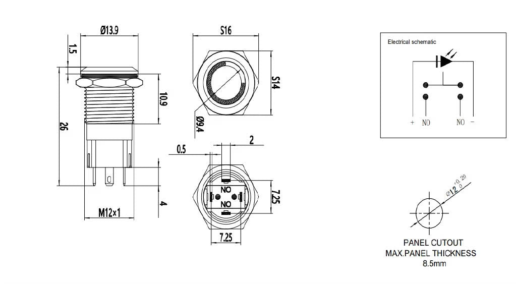 The push button switch is a ultra high quality fail safe switch designed for use with the Advanced radio range of products.