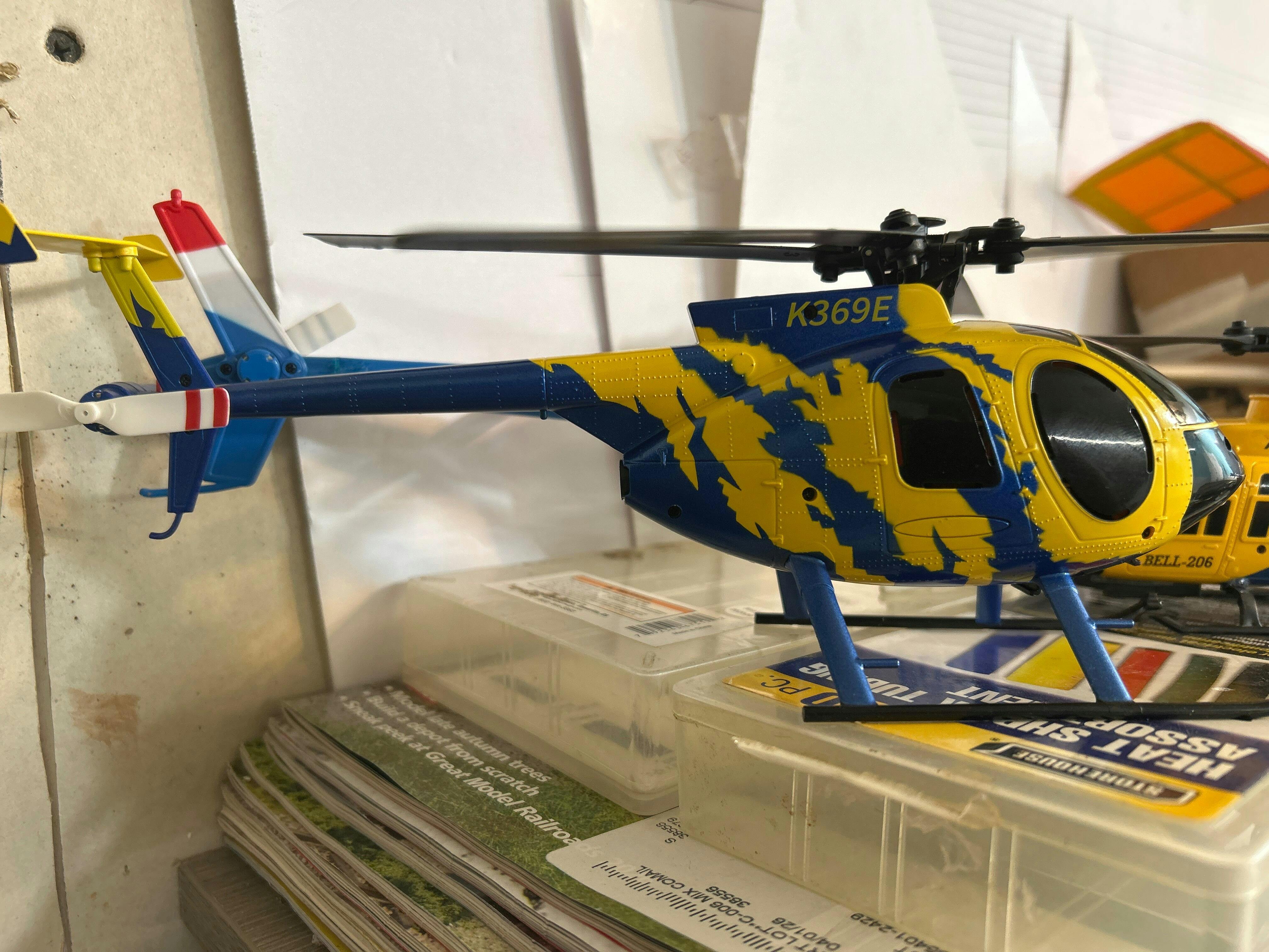 Great looking MD500E. And flies as good as it looks! Paint scheme is awesome. It has a very stable hover and smooth flying characteristics. I average about 12 minutes of flight time per battery. Get more batteries, worth it!