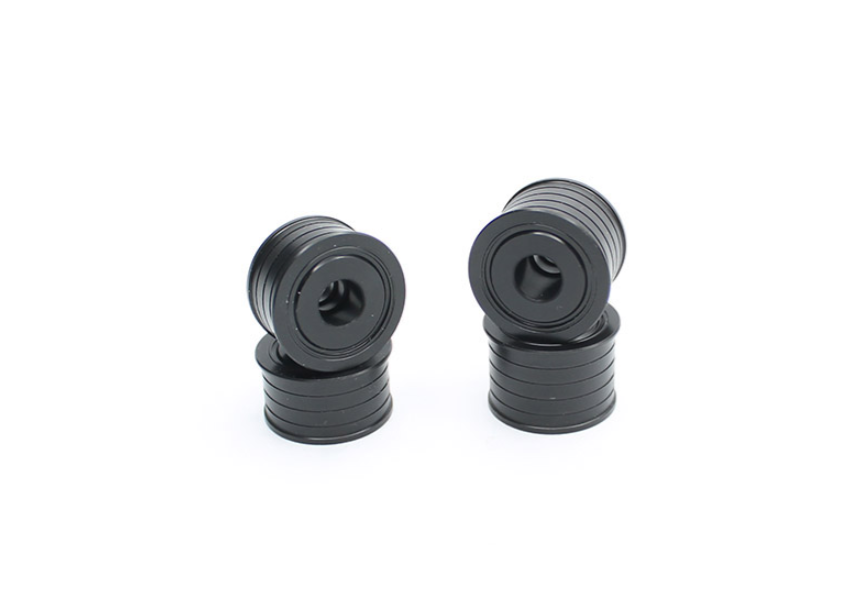 Precision Machined Black Delrin Wheels for your FX28. 0 offset, 11mm wheels for the front and 0 offset, 14mm wheels for the rear.