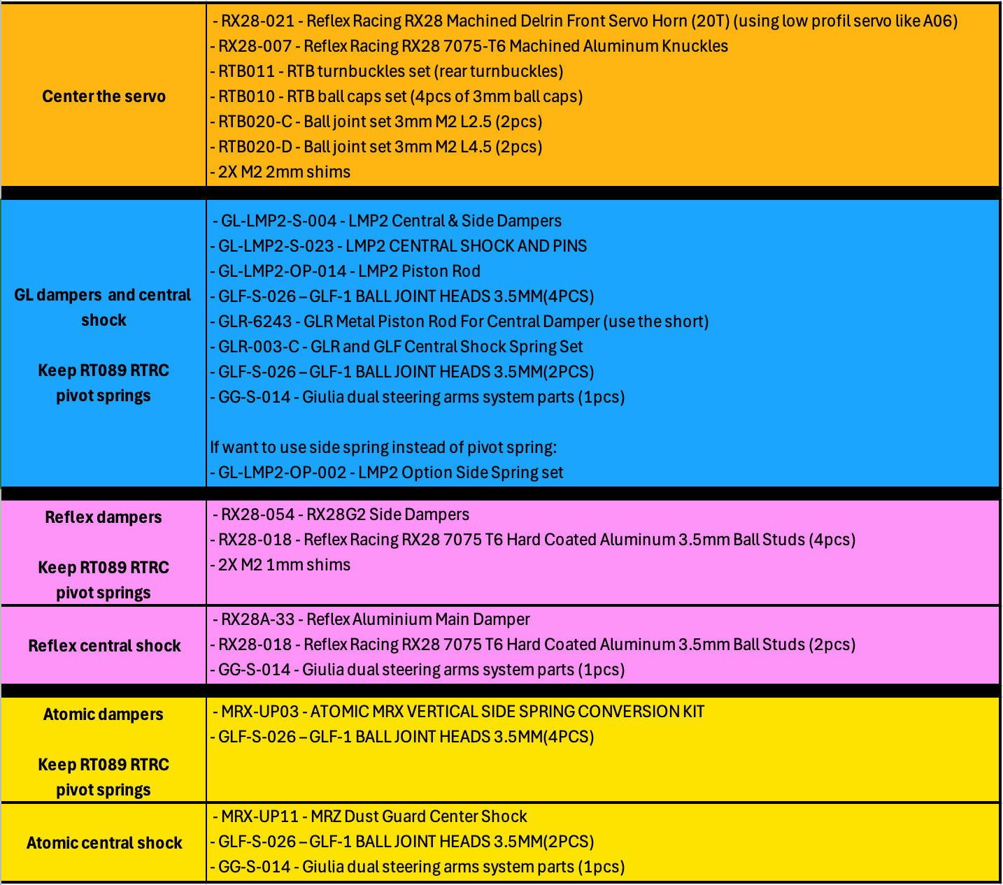 To help you understand all tuning options available, we have published some pictures of different tuning options. Also, we have added a tab with all the parts we recommend for making these different set-ups