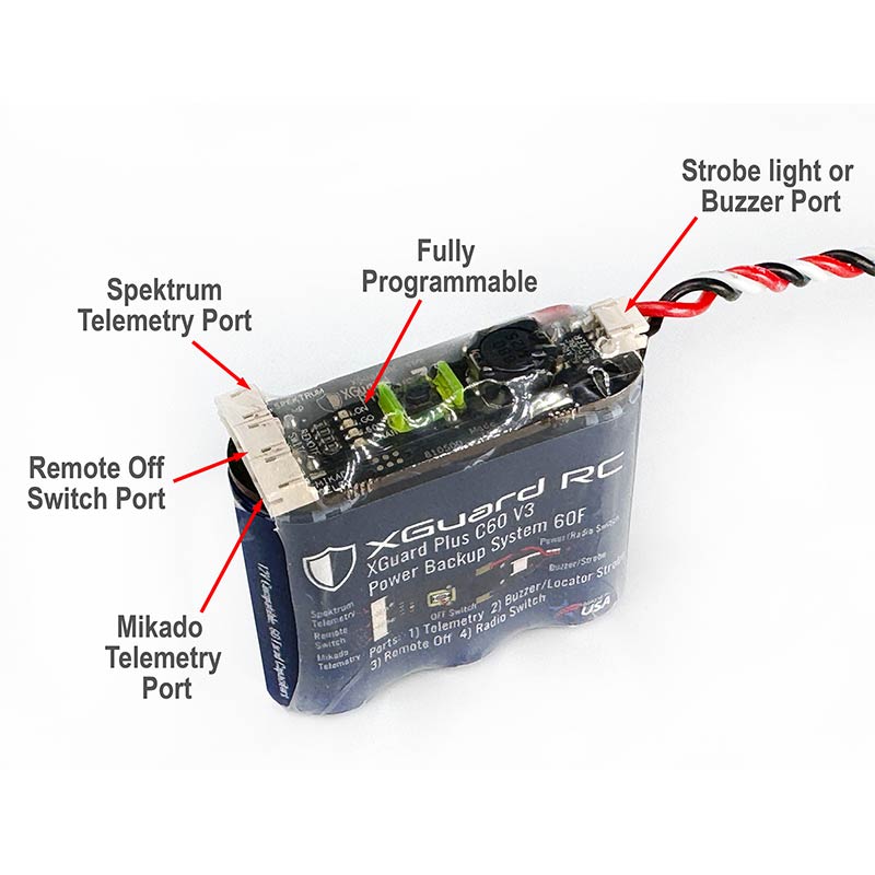 The V3âs allow you to run the servos up to 12v, the V2âs required you to run the servos at 7.4v or lower. XGuard is a great company to deal with and they will upgrade your V2âs to V3âs for (currently) under $15! I havenât used any of the telemetry features, I use them simply as a backup for power failure and set it up on a switch using macrocells on a Vcontrol radio. See Auggieâs video on YouTube for instructions. This saved my helicopter when a power lead got so hot it un-soldered itself and I lost power to the motor. It paid for itself probably 7x over in that moment